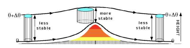 - Trapped gravity waves occur when wind speeds rise sharply above the mountain and the stability decreases in the layer above the mountain.