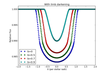 - b=0: Centre of the planet passes through the centre of the star, w.r.t. the observer